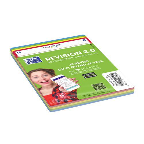 Fiches bristol Revision 2.0 Oxford A6 Q5x5 cadre compatibles avec l'application Scribzee. Scribzee® est une application gratuite pour scanner, sauvegarder et classer vos fiches dans votre smartphone. Une couleur de cadre,par matière pour vous permettre de classer et de mieux repérer vos fiches par thème ou matière. Idéal pour organiser vos fiches dans votre smartphone sans perdre de temps. Coins arrondis pour que les fiches ne se cornent pas.