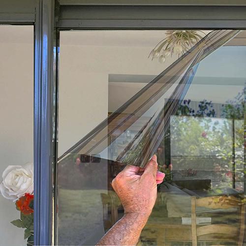 Film miroir sans tain argent clair repositionnable qui offre une discrétion totale contre les regards extérieurs.