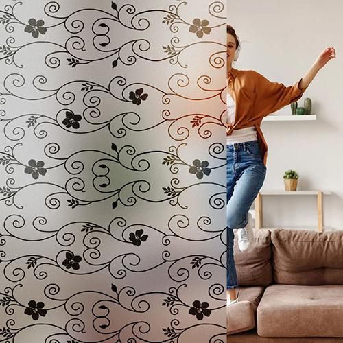 Film repositionnable à motifs baroques, Type de film pour vitre: Film décoratif, Coloris: Noir