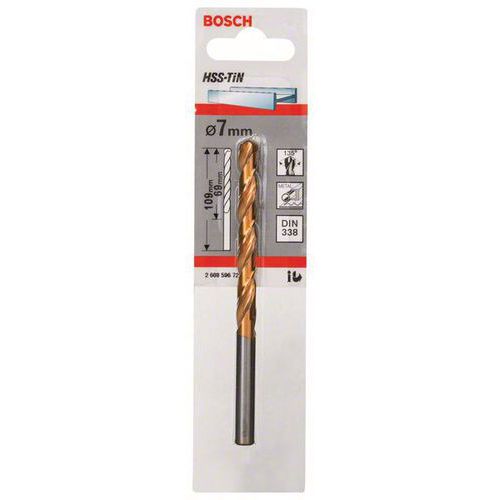 Forets à métaux rectifiés HSS-TiN, DIN 338, Longueurs: 109 mm, Longueur utile: 69 mm, Foret Ø: 7 mm