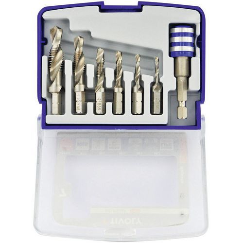 | Intitulé du produit | Forets Taraudeurs HSS shock serie queue hexagonale, Nb de pièces: 7, Matériau: Acier |