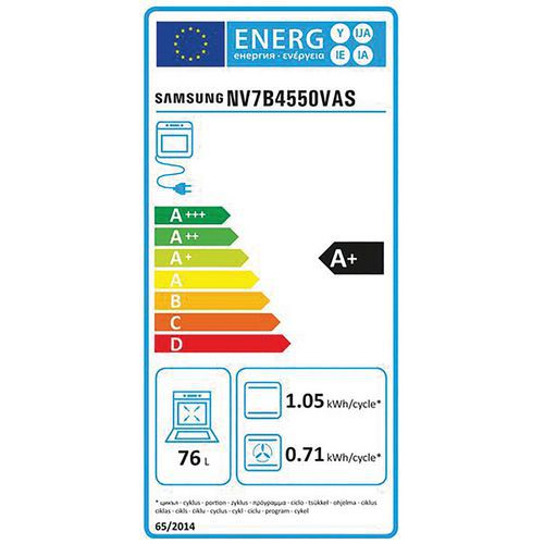 | Intitulé du produit | Four pyrolyse NV7B4550VAS, Procédé de cuisson: Chaleur tournante, Mode de nettoyage four: Pyrolyse |