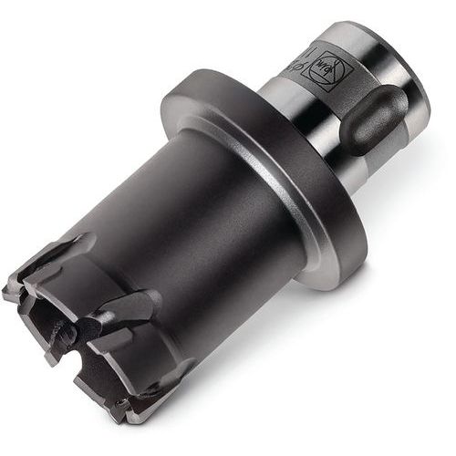 Fraise au carbure avec revêtement TiAlN Avec emmanchement QuickIN PLUS, Durée de vie maximale grâce au carbure de tungstène Puissance de coupe exceptionnelle dans tous les métaux courants, travail plus rapide de 20%, forces de coupe et d'avance réduites grâce au revêtement TiAlN. Dimensions métriques, Profondeur de coupe : 20 mm, diamètre de perçage acier jusqu'à 25 mm, diamètre de perçage aluminium jusqu'à 30 mm.