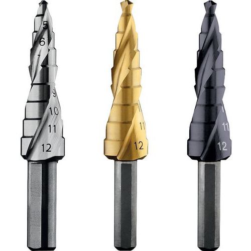 Fraises étagées, queue 3 pans, Type: Fraise étagée, Ø hors tout: 12 mm, Foret Ø: 12 mm, Usage: Perçage