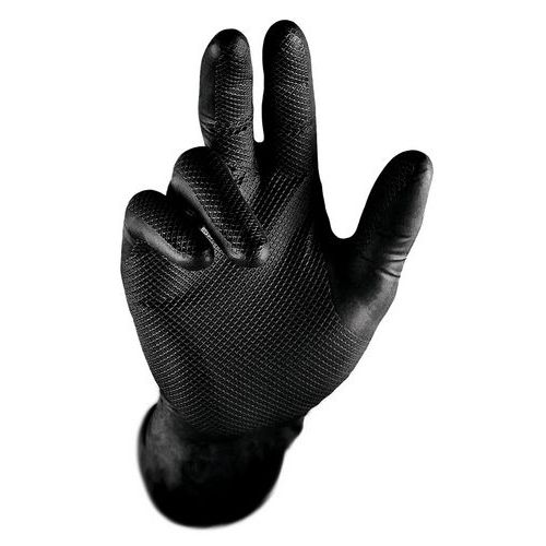 | Intitulé du produit | Gant jetable nitrile noir Grippaz, Matière textile: Nitrile, Usage alimentaire: non, Coloris: Orange |