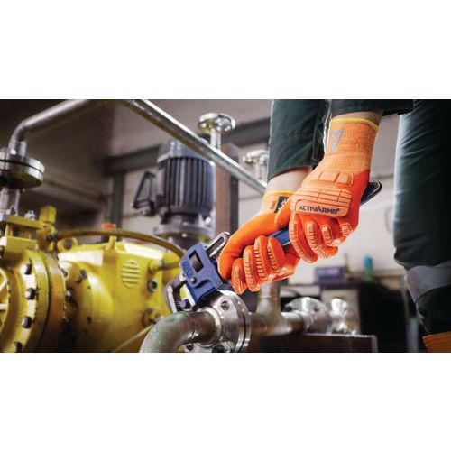 - Couleur haute visibilité facilitant la localisation des mains de l'opérateur pour plus de sécurité.