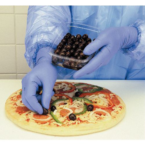 Les gants en nitrile bleu foncé VersaTouch® 92-465 sont conformes aux normes de manipulation des aliments et conviennent à un large éventail de tâches liées à la transformation des aliments.