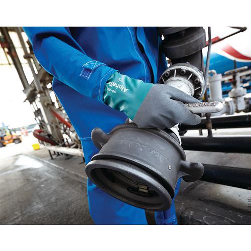 Les gants de protection AlphaTec® 58-435 sont dotés d'un polymère d'enduction ANSELL GRIP™ Technology, qui permet un contrôle plus sûr lors de la manipulation d'objets huileux ou humides et réduit ainsi la fatigue des mains.