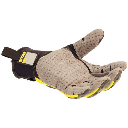 - Double épaisseur de polyamide, polyuréthane sur paume avec picots PVC : antidérapant.