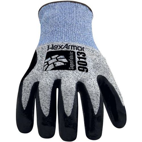 Gant de protection HexArmor 9000 Series™ 9013 contre les piqures d'aiguille hypodermique (niveau 2) avec support HPPE / fibre de verre, insert SuperFabric® et enduction paume en nitrile sablé offrant de bonnes capacité de préhension en milieux secs et humides.