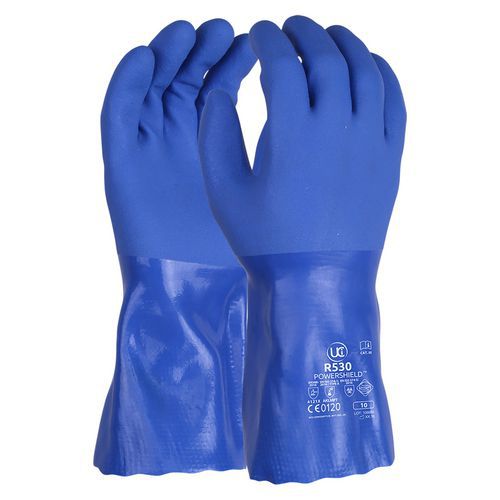 Gants de protections chimiques PVC, Matière: PVC, Coloris: Bleu, Gant taille: 11, Usage unique: non