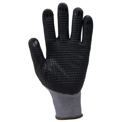- Enduction palmaire en micro-mousse de nitrile avec picots sur la paume.