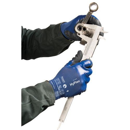 Premier modèle ultraléger de la gamme HyFlex® à combiner enduction, pouvoir oléofuge et préhension en milieu huileux dans un gant offrant un niveau élevé de dextérité et de confort.