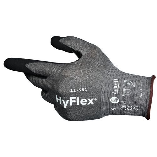 Confort élevé : Les gants industriels HyFlex® 11-581 sont ultra-légers et offrent une protection ANSI/ISEA 105-2024 CUT A6 et EN ISO F avec 20 % de poids en moins*, ce qui garantit une résistance supérieure aux coupures et une meilleure dextérité.