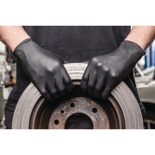 Gants d'examen en nitrile noir pour une protection des mains contre la saleté et une prise en main supérieure.