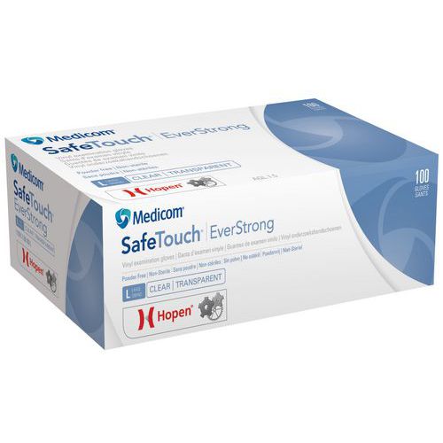 Pour la manutention, préparation, vente, etc,… de produits alimentaires. AQL = 1,5. Poudrés à l’amidon de maïs. Coloris : blanc translucide. Conditionnés en boîte distributrice de 100 gants.