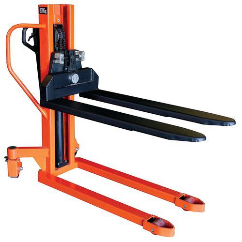 | Intitulé du produit | Gerbeur manuel basculeur, Force: 800 kg, Hauteur de levée maxi: 920 mm, Poids du produit: 210 kg |