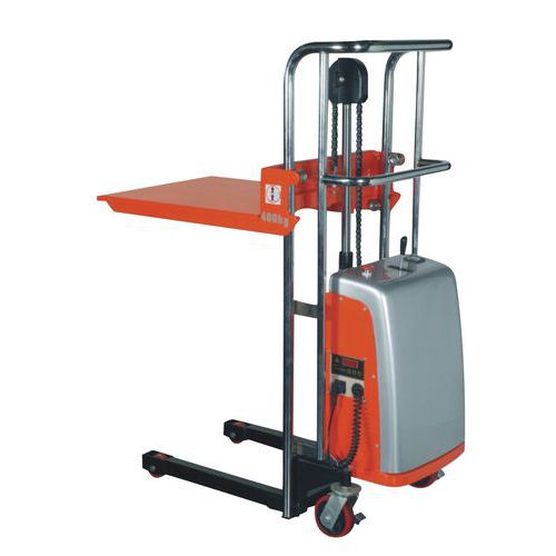 - Gerbeur semi-électrique permettant de soulever facilement toutes vos charges jusqu'à une hauteur de 100 mm.
