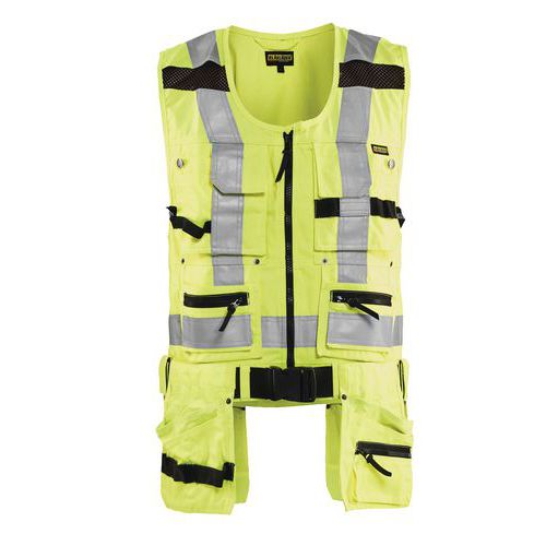 Gilet porte-outils haute visibilité jaune fluorescent ceinture textile
