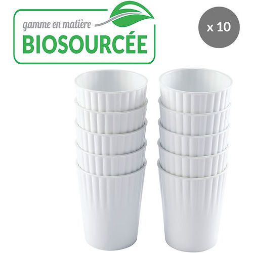 | Intitulé du produit | Gobelets bisourcées, Capacité: 22 cL, Matériau: Polyéthylène haute densité, Nb de pièces: 10, Coloris: Blanc |