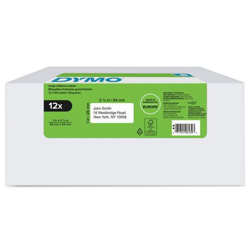 | Intitulé du produit | Grande étiquette de retour autocollante LabelWriter, Largeur: 54 mm, Fond coloris: Blanc, Longueur: 25 mm |