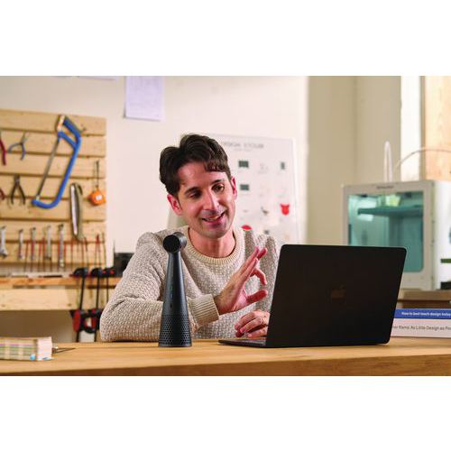 - Annulation de l'écho et diffusion du son tout autour de la base pour un son uniforme pour tous les participants d'une réunion.