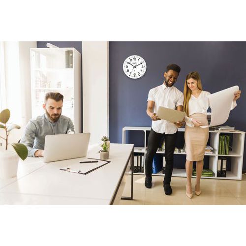 Horloge analogique murale Radio contrôlée Ø30 cm. Mise à l'heure automatique. Mouvement silencieux, permet de profiter du temps qui passe sans entendre la trotteuse. Bonne lisibilité. Garantie client : 10 ans
