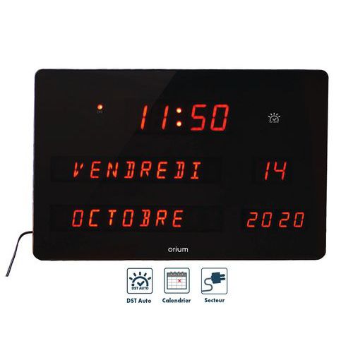 | Intitulé du produit | Horloge calendrier Imera, Horloge affichage: Numérique, Coloris: Noir, Largeur: 36 cm, Hauteur: 22 cm |