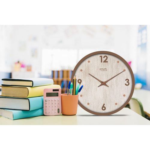 Horloge Eco-conçue Naturalis cappuccino. Mouvement silencieux pour assurer calme et concentration dans vos espaces de travail. Design élégant , elle s'intègre harmonieusement dans n'importe quel espace. Ajoute une touche contemporaine tout en respectant le bien-être de votre environnement.