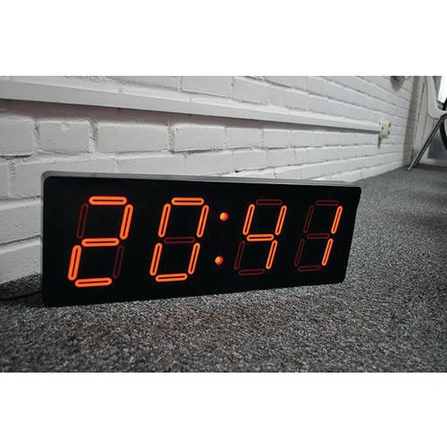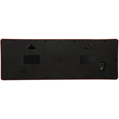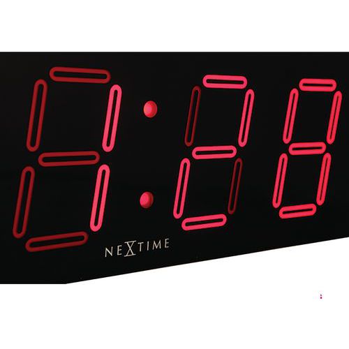 - Boîtier de l'horloge en plastique noir et cadran en verre avec éclairage LED rouge.