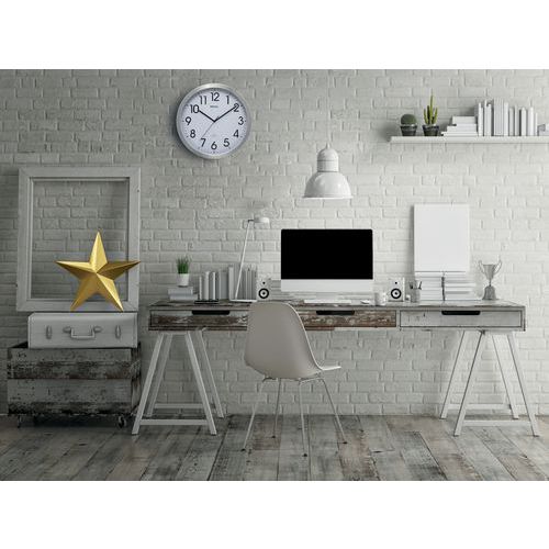 Un modèle élégant et très robuste. Cadre large en aluminium brossé. Synchronisation automatique par le signal DCF77, passage automatique de l´heure d´été à l´heure d´hiver.. Des interférences, dues à des situations géologiques ou des constructions métalliques dans les bâtiments, sont possibles. Dans ce cas un réglage manuel sera nécessaire. Chiffres arabes noirs en police fine ayant du style. Hauteur des chiffres : 4,4 cm. Couvercle en verre minéral plat. Extrêmement bien lisible. Pour le bureau moderne, les locaux représentatifs et l'utilisateur aimant le design. Cadran blanc avec division des heures et des minutes. Axe de couleur de l'aiguille. Mouvement silencieux. Fixation murale par œillet en forme de poire. CE