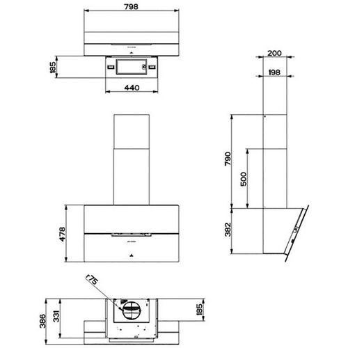 | Intitulé du produit | Hotte décorative murale, Débit d'air: 710 m³/h, Coloris: Noir, Type de produit: Hotte murale |