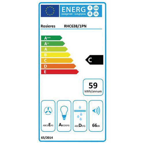 | Intitulé du produit | Hotte visière ROSIERES-RHC638/1PN-59 Kwh/an-Noir, Débit d'air: 348 m³/h, Coloris: Noir |