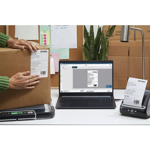 Imprimante d'étiquettes Dymo 5XL à la technologie d'impression thermique directe, sans toner et sans encre. L'imprimante reconnait automatiquement la taille des étiquettes, ce qui simplifie l'impression et fait gagner du temps. Impression XL professionnelle et à grande vitesse, avec une production pouvant aller jusqu'à 53 étiquettes par minutes.