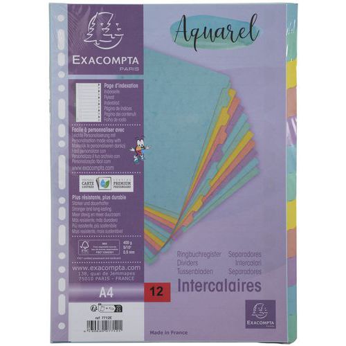 | Intitulé du produit | Intercalaire carte lustrée (lot de 15 assortis), Nb de divisions: 20, Coloris: Multicolore |
