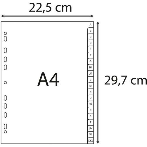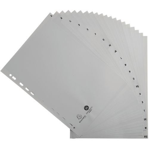 | Intitulé du produit | Intercalaire imprimé alphabétique, Nb de divisions: 20, Coloris: Gris, Pour format: 210 x 297 mm (A4) |