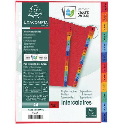 | Intitulé du produit | Intercalaire (lot de 5 assortis), Nb de divisions: 20, Coloris: Multicolore, Pour format: 210 x 297 mm (A4) |