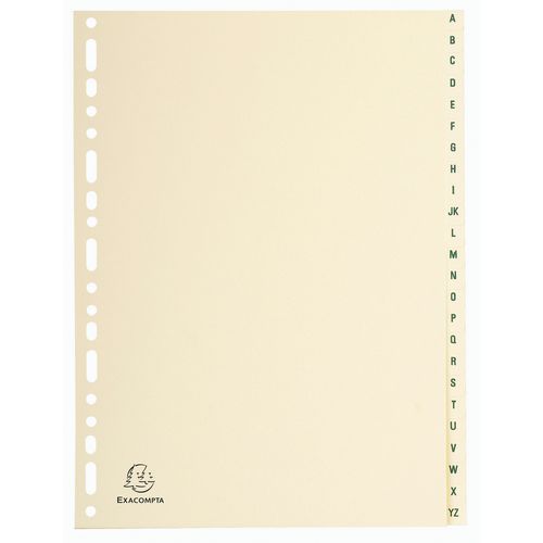 | Intitulé du produit | Intercalaires carte peau 155g 24 positions de a à z A4, Nb de divisions: 24, Coloris: Beige |