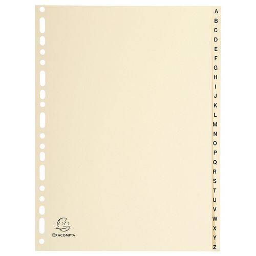 | Intitulé du produit | Intercalaires carte peau 155g 26 positions de a à z A4, Nb de divisions: 26, Coloris: Beige |