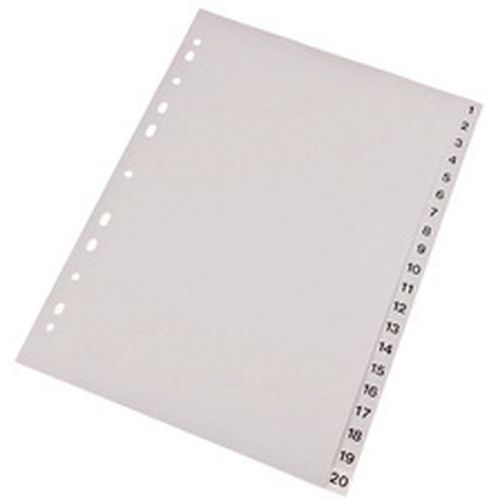 Intercalaires en plastique, numériques, A4, Nb de divisions: 20, Coloris: Gris