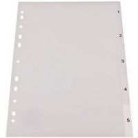 Intercalaires en plastique, numériques, A4, Nb de divisions: 5, Coloris: Gris, Pour format: 210 x 297 mm (A4)