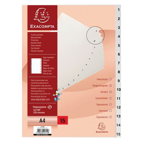 | Intitulé du produit | Intercalaires imprimés numériques pp blanc 15 positions, Nb de divisions: 15, Coloris: Blanc |