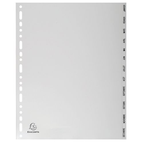 | Intitulé du produit | Intercalaires mensuels gris janv-déc. 12 positions A4 maxi, Nb de divisions: 12, Coloris: Gris |