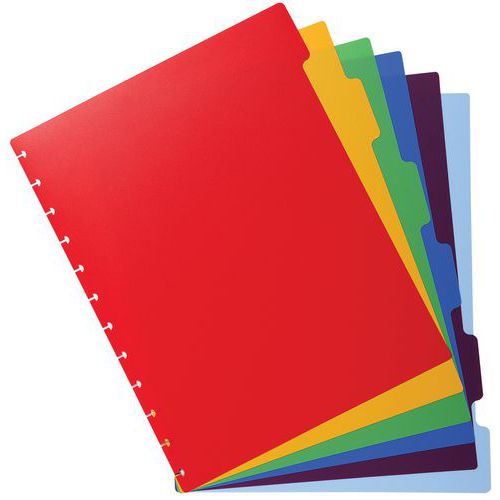 Intercalaires polypropylènes couleurs pour porte-vues à anneaux.