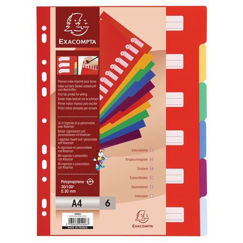 Intercalaires touches neutres Exacompta - Polypropylène - Coloris assortis - A4