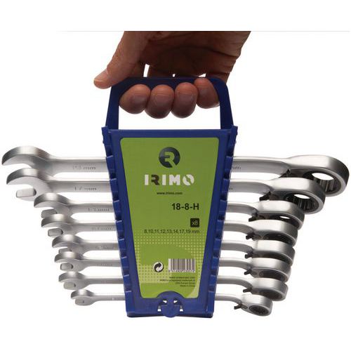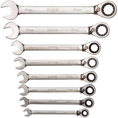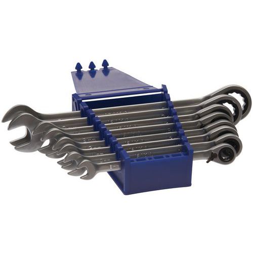 | Intitulé du produit | Jeu 8 clés mixtes à cliquet sur clip, Finition: Chromée, Assortiment: Module pour servante, Matériau: Acier |