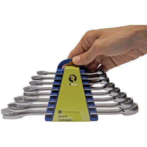 | Intitulé du produit | Jeu 8 clés mixtes sur clip, Finition: Chromée, Assortiment: Module pour servante, Matériau: Acier |