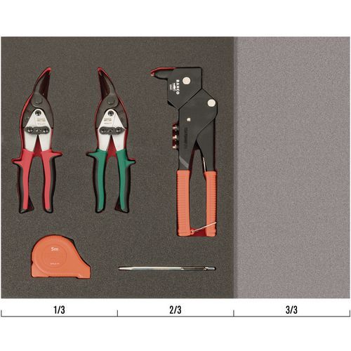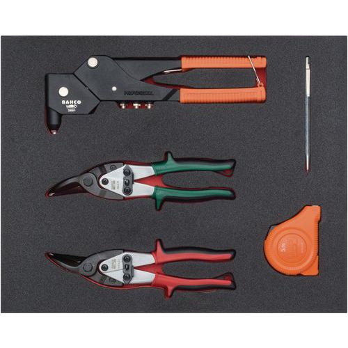 | Intitulé du produit | Jeu cisailles à tôle, pince à riveter et mètre ruban, Nb de pièces: 5, Poids du produit: 1.9 g |
