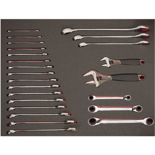 | Intitulé du produit | Jeu clés/clés à molette module mousse 3/3 Fit&Go 22 pièces, Nb de pièces: 22, Poids du produit: 6 g |