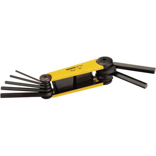 | Intitulé du produit | Jeu clés mâles 6 pans repliable 7 pièces, Empreinte vis: 6 pans creux, Nb de clés: 7, Matériau: Acier |